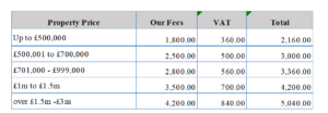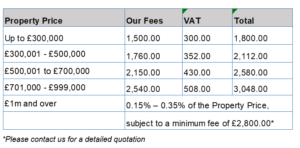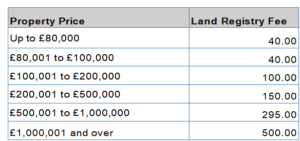 To provide you with an indication of likely fees please see the table below. This is based on the assumption that the Property you are buying already has a registered title.