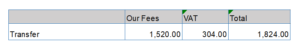 We will charge a fee of £40.00 plus VAT for each electronic money transfer we make on your behalf.